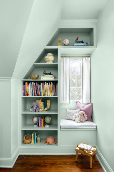 Working alongside General Contractor Allison Bible, Jenny brought several standout moments to life. One favorite is a custom built-in bench seat in the homeowners’ daughter’s bedroom. Rather than disguising an awkwardly off-center window, Jenny embraced its asymmetry, designing a window seat and book nook that enhances its charm. “The end result is a charming nook that feels like it has always been a part of this historic Bungalow.”