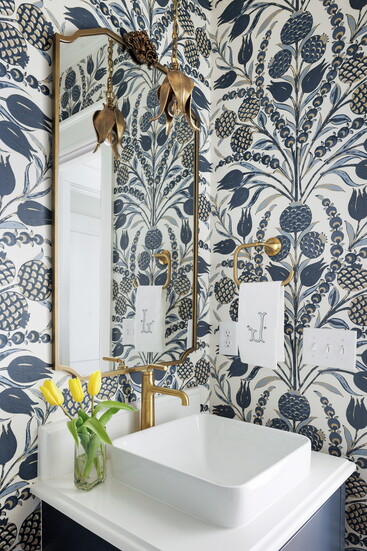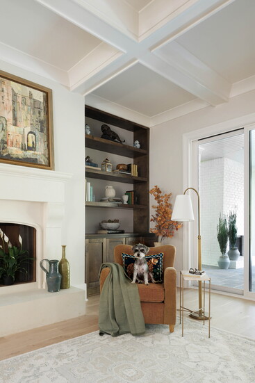 Another highlight emerged unexpectedly during demolition. When walls were removed in the formal living room, the original brick was uncovered in the fireplace. Jenny reshaped the firebox opening to echo the curve of the home’s original front door and kept the mantel simple. “The end result feels like it was original to the home.”