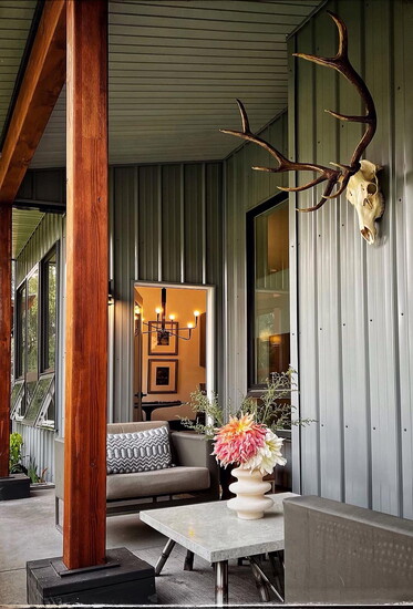 The biggest souvenir is the architecture—an Eichler-esque design, which is inspired by modernists with midcentury roots. “They’re fabulous,” says Donna. “They remind us of Palm Springs. Our first love with the house was the architecture. We are elated to be here in Lolo…we used to live in the city, we don’t need that anymore in our life. We like living with cows.”