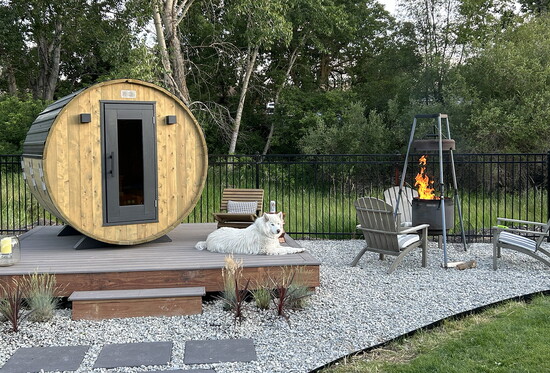 A sauna is the latest addition. Aside from moving a fence line to gain more livable space and having a base built, Rick and Donna designed and made another staycation dream space. It's a no-phone-allowed capsule where daily rejuvenation awaits. The day fades away and a new daily practice of peace is born.