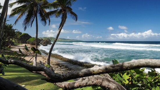 Close to Bridgetown, crescent shaped Carlisle Bay provides a natural harbor for swimming or snorkeling with boats dotting the water and sunbathers line the shore. Pebbles Beach overlooks Carlisle Bay with some waves and most mornings the race horses are taken by their grooms to bathe in the water. Around the corner, the south coast offers surf breaks at Drill Hall or Freights. Talk to the local surfers to understand how the culture works for exchanging turns, etc. For a break from the beaches, take a walk or practice yoga on the Richard Haynes Boardwalk. Then, stop by Artsplash Cafe for excellent coffee, breakfast, or lunch, and explore its outdoor farmers market and art gallery showcasing local artists.