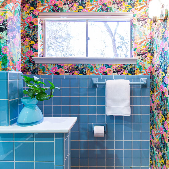 - Go all in on one room and make it your “trendy room.” For example, your primary or guest bathroom could be a retreat filled with your favorite warm colors in the tile, wood, and textiles. I bet when you entertain, everyone will want to visit your bathroom!