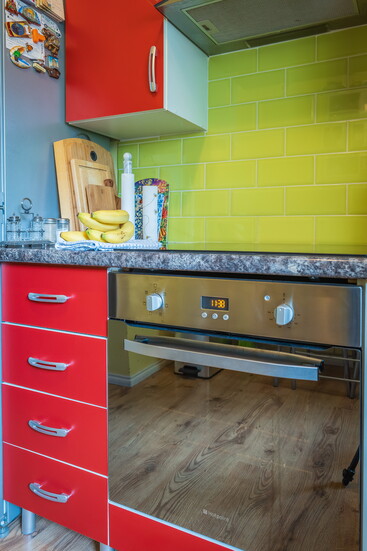 - Afraid to go too bold too fast? Use a mid-toned hue paint color on a larger area, like your kitchen cabinets or a wall color in one room.