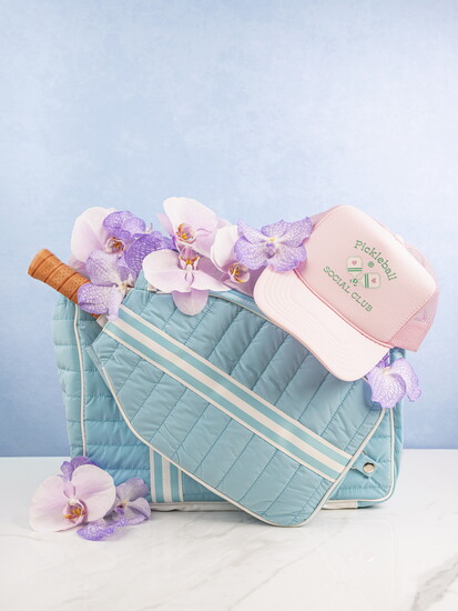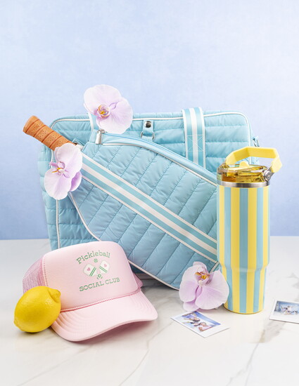 “We have fun printed bags that are perfect for pickleball but also great for everyday use,” she says. “The goal of this collection is simple: grab your girls, pick out a cute outfit and some accessories, and hit the courts feeling confident.”