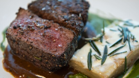 “We have a huge wine list, a cocktail program and a rotating list of experimental concoctions that excites guests, especially our created 360 signature cocktails,” Blaise says. "The center bar is also impressive, topped with black stone and lined with glimmering golden-black tiles."