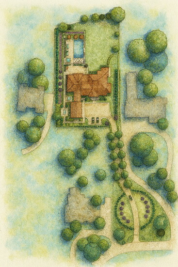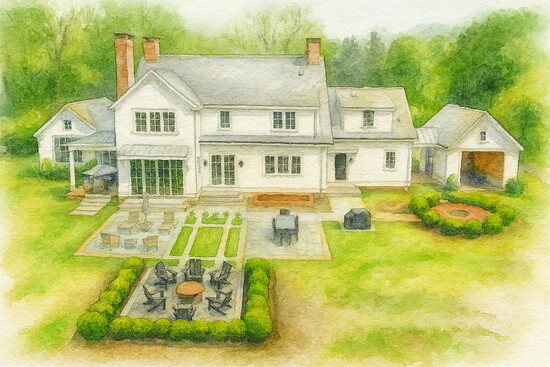 - The Entertaining Zone: Bold hardscape features, a fire element, and room for conversation clusters.