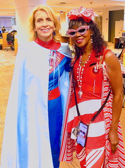 “I am the luckiest woman to have met Patti and seen how every challenge becomes a joyous and loving catapult for change,” shares Michele Young, attorney, breast cancer survivor, leader of the Pink Eraser Project and Collins’ partner in the BCF Land of Superheroes program.