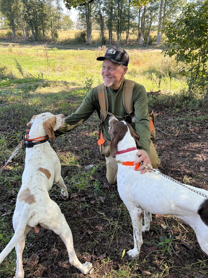 Explaining a typical guided hunt, he said, “Each hunt begins with a safety meeting and a prayer for the hunt. I release the dogs and the hunt begins. We start in large bean fields with strips of cover down the middle. The birds are in the cover. After we hunt the cover we go around the edges to pick up other birds. It’s not unusual to find a covey of wild birds now and then. On several occasions we finish the hunt at the local diner with a good meal.”