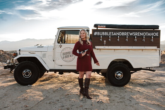 Christine Johnson is the woman behind Bubbles and Brews Reno Tahoe, a unique vintage mobile bar featuring up to seven pours, including perfectly chilled beer, prosecco, signature cocktails, or just about anything a client can dream up.