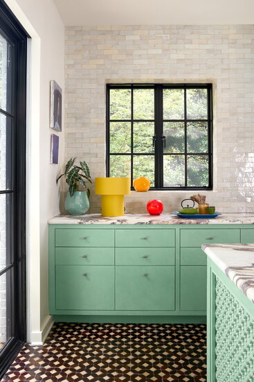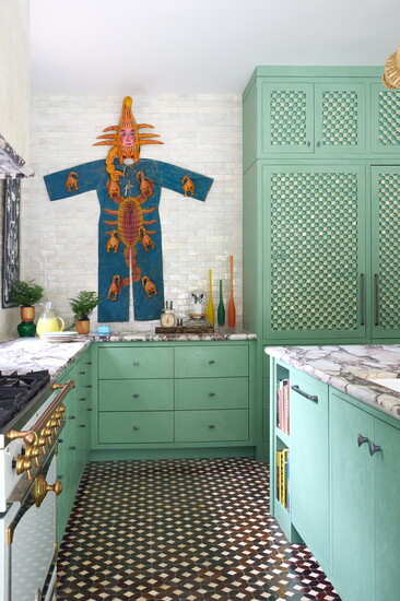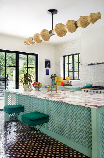 Even though Austin and Alex were managing the renovation from California, the process was seamless — the magic of a family that speaks the same creative language. They flew in just three times, relying on long-distance collaboration and a shared design vision. Marble countertops were sourced from California, custom knobs came from a Parisian designer and intricately carved Moroccan wood panels (a feature Austin initially deemed “too expensive”) became the kitchen’s crowning jewel.