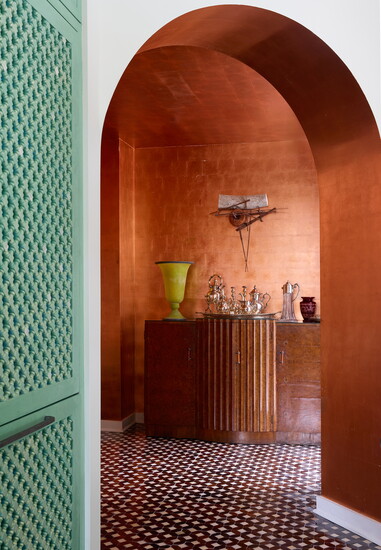 The project began in early 2024, with construction kicking off that March. Carrier assembled a familiar dream team: contractor Perry Sponseller of Sponseller McGary Construction, Jay Schwartz Electrical and Cobb Plumbing — all longtime collaborators on her restaurant ventures. Artist Allison Furr Lawyer, whose gold and silver leafing work graces Karen’s eateries, added Venetian plaster finishes to the new kitchen cabinetry. Her high school best friend, Julia Avanzi Finnell, a fellow Memphis College of Art alum, helped oversee the architectural details. “I’m a visual person, not great at reading plans,” Karen admits. “Julia translated it all for me.”