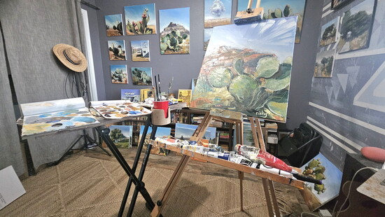 Local artist, Matthew Pinkus, is inspired by the desert that surrounds us. As a California transplant, the desert landscapes we take for granted are something of beauty to Pinkus, allowing him to take inspiration photos on his bike rides as he travels around the valley and turning the photos into beautiful paintings. It reminds even the most seasoned desert native that the plants, the browns, and even the dirt we take for granted (and maybe even complain about) is a work of natural beauty. A natural beauty that is seen as something special to those who haven’t been around it for years.