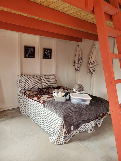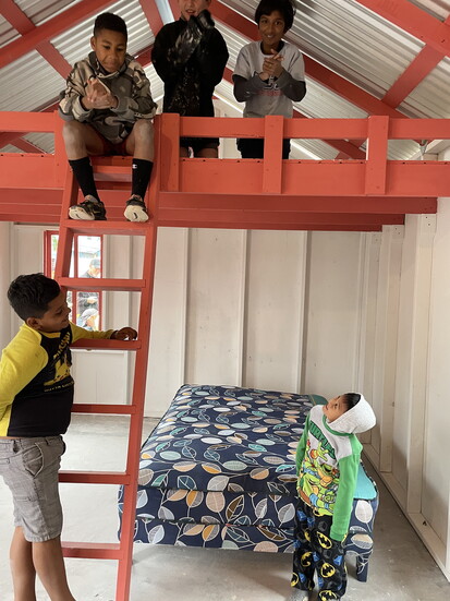 The houses we build are 12-by-20 feet, about the size of a shed. But inside those walls, lives are transformed. We build a loft so kids have their own sleeping space, a simple kitchen counter, locking windows with curtains and, most importantly, a real locking door — something many families have never had.