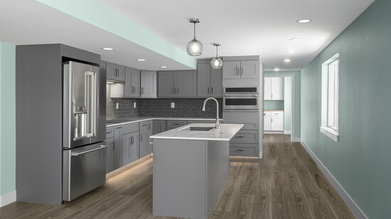 The plan was to finish the 1600-square-foot basement for Patricia while Ryan and his family would occupy the main and upper levels of the house. Enter Bunn & Sons, a Broomfield-based home construction and remodeling company. Tom Bunn, owner, listened as Patricia and Ryan shared their requirements for the space. Tom and his crew worked closely with the Springers to create a self-sufficient area tailored to Patricia’s needs. The requirements included a bedroom, full kitchen, washer/dryer and living room. “It’s not an official ADU (Accessory Dwelling Unit),” explains Tom, “but it has everything she needs.” The basement also features a walk-out design, giving Patricia easy access to the outdoors, which is important as she loves to sit in the sun.