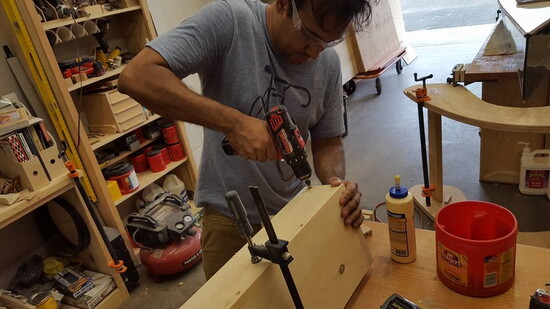 Introductory courses cover the fundamentals of woodworking. By the end, students complete a tool tote and a small gift box. In addition to three monthly introductory classes, the workshop offers a Saturday session from 9:30 a.m. to 6 p.m., during which participants build the gift box in a single day.