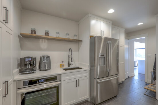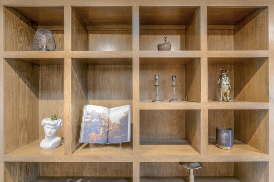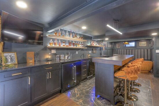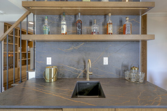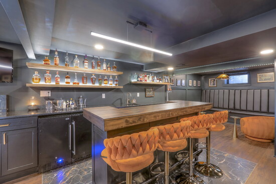Still, nothing shows their range quite like a recent whole-house remodel in Old Leawood, completed in late 2024, where the team transformed nearly every inch of a dated home into something custom and stunning. A dingy basement became a speakeasy, complete with a Murphy door entrance. Custom stair railings, large built-in cabinetry, and reglet drywall openings turned structural necessities into true architectural moments. It was a project that showcased not only craftsmanship but creativity and problem-solving at every turn.