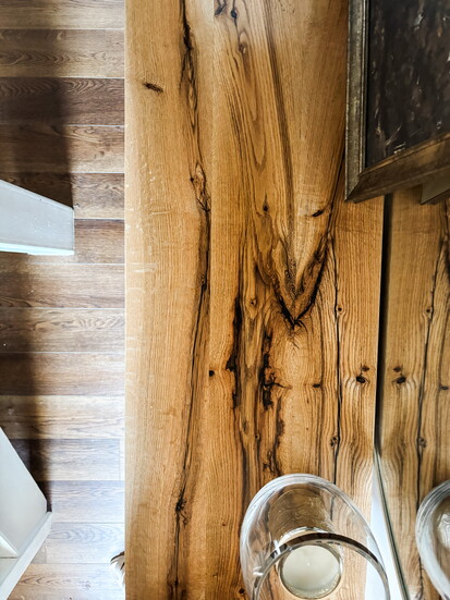 “When you’re working with reclaimed pieces, it’s important to understand that it’s going to be more organic and lived in because the wood is not perfect, and understanding that the imperfections are part of what makes it beautiful,” Ashley says.