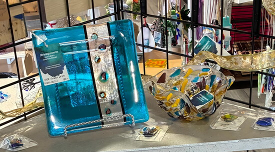 At JRHglassworks, you can find fused glass creations, including nightlights, tea-lights, platters, bowls, recycled wine bottles and jewelry. They are created using multiple techniques in kiln firing and a range of glass colors.