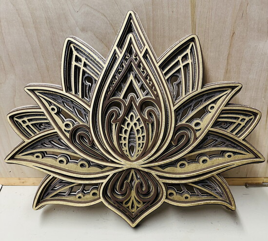 The Innovative Artisan, aka Dennis Gereaux, creates laser-cut wall art, most of which is made from recycled corrugated boxes. Through a multi-layer, intricate process, his work includes organic and geometic designs. Custom work available.