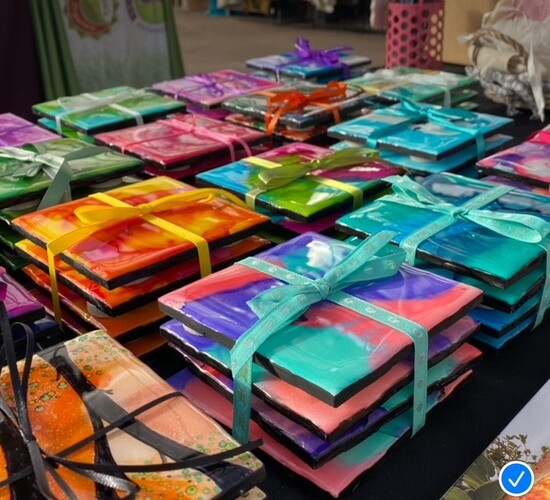 Pinkinparker Alcohol Ink creates one-of-a-kind, colorful home décor, including coaster sets, framed art, tiled trays, PopSockets, and light switch covers. This mesmerizing medium adds pops of color and originality to your home.