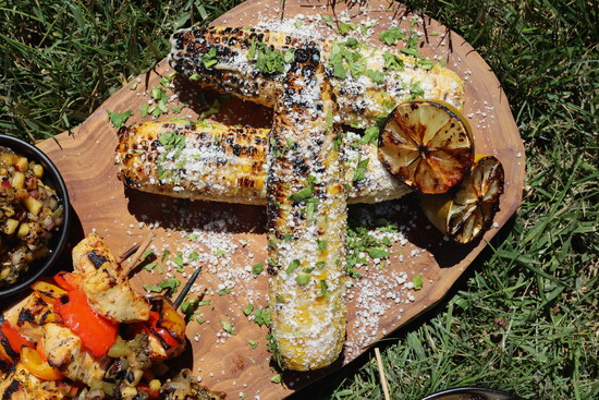 Directions: Season corn cobbs with olive oil, salt and pepper and roast over the grill or campfire for 5 minutes. Remove from the fire, brush with mayo and sprinkle with cotija cheese and cilantro. Finish with roasted lime juice and enjoy.