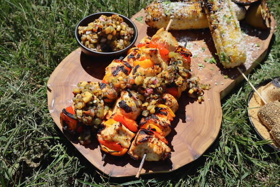 Grilled Citrus Chicken Pepper Kabobs With Peach Salsa