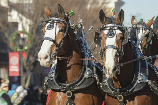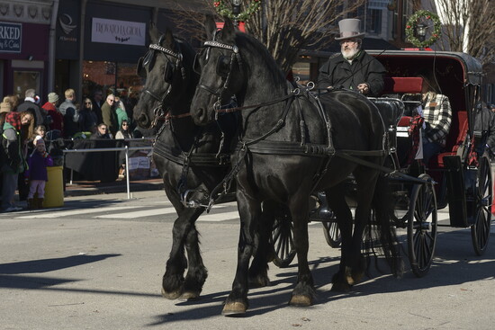 Since 2000, the parade has held the title of largest horse-drawn carriage parade in the United States, a distinction awarded by the U.S. Carriage Association. More than 65 carriages participate each year, ranging from stately Clydesdale teams and glistening vis-à-vis carriages to buggies and surreys trimmed with holiday finery. One of the most crowd-pleasing sights is the antique fire water pumper carriage that races through the streets at the end of each parade, bell ringing in triumph.