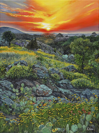 Elise grew up in Paris, France, in the 1970s, where she first fell in love with the stories painted by the great masters. Their work taught her that art is more than technique—it’s a way of seeing, feeling, and sharing the world. After completing her collegiate years in the United States, she began to tell her own story through paint. Her journey eventually led her to Texas, where the wild beauty of the landscape and the warmth of the community have become central to her work.
