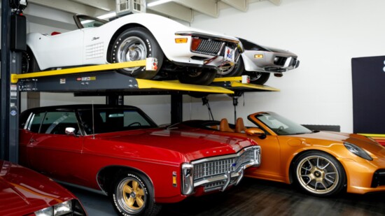 Aaron Chepenik, of Smoke Wagon Whiskey and Silver Dollar Vodka, and avid car collector recently called on Vegas Garage Lifts for a custom buildout in his warehouse. Storing his collection of classics, from Corvettes to a Camero to a Porsche, Aaron can relax and enjoy his hobbies while puffing on a cigar and enjoying his perfectly blended whiskey.