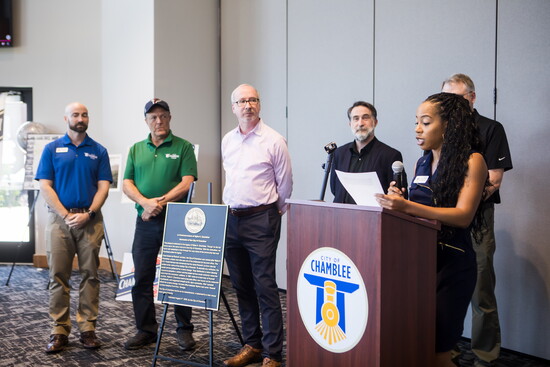 During the event called A Celebration Through Time: Honoring Chamblee's Past, Present and Future, city officials, staff members, and guests gathered to mark the occasion with the dedication of a plaque commemorating Wylie H. Chamblee, the city's namesake.