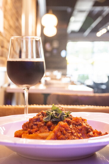 Even with a new menu effective June 1st, this popular dish remains a familiar choice and favorite pick for Chef Nino and his loyal clientele. Large tubular pasta lies flat and collects all the saucy goodness from Nino's homemade bolognese made with beef and pork ragu. Fresh carrots, celery and bay leaves are added to his signature marinara sauce, a recipe he developed over the course of twenty years. The sauce is slow cooked, simmering for hours before adding a touch of cream for balance. Served with fresh basil and parmesan to taste. And a good glass of cab. Cheers!