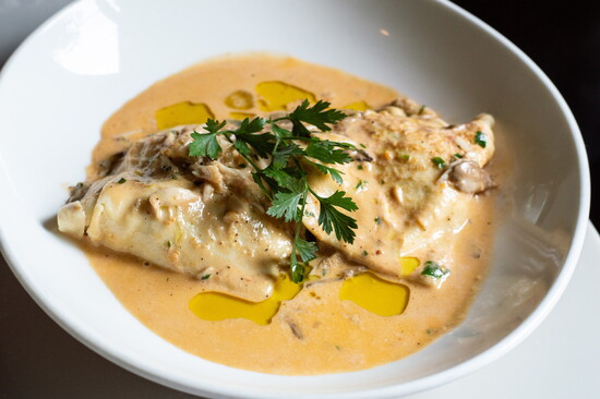 This menu staple created by Chef Armen is inspired by a dish he enjoyed in Lyon, France. A savory warm crepe that is rich and indulgent, filled with jumbo lump crab meat and the freshest, seasonal wild mushrooms. Everything about this dish is comforting. From the homemade crepe made with brown butter to the lobster sauce generously poured over to the aromatic herbs that bring it all together. Dip the homemade bread into the extra sauce and enjoy with a glass of Pinot Grigio.
