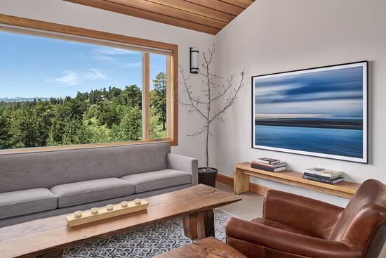 In his mountain home, McClish displays his work in minimalist steel frames crafted by his close friend and gifted metal sculptor Joshua Pass. (JoshuaPass.com)