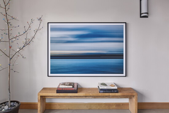 “Joshua fabricates the frames for me, then I do the black patina and seal them. The print gets mounted to Dibond, which is an aluminum composite. Structurally, it’s super strong and stable,” McClish explains. “I wanted something super simple—something that would protect the piece, not overstate it, but let it be unique. It doesn’t take away from the art at all––the printed paper goes right up to the edge, and then it just floats in the frame.”