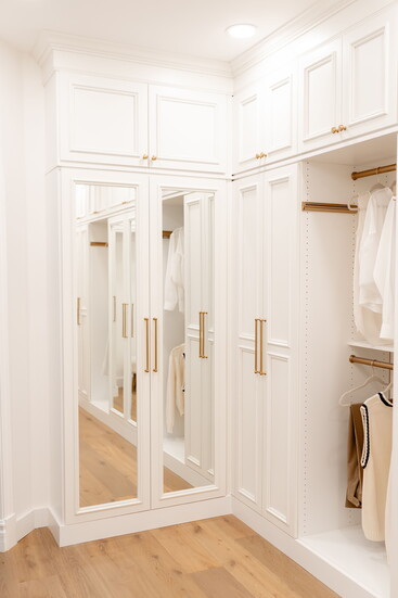 One big advantage to keeping an organized system? “You will not hear yourself saying, ‘Oh I forgot I had that’ as often,” she quipped. If you don’t already have them, Debbie also suggests adding full-length mirrors to doors to refresh the existing space and “create an elevated look.” The light, she said, “reflects off the mirror and brightens the closet, making it feel more spacious with function and style.”