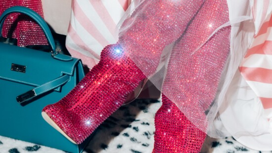 And while Kristen’s day-to-day wardrobe is often “a good pair of jeans and a simple top,” an aqua-hued sequined dress and sky-high red satin platforms remind that Kristen isn’t afraid to sparkle.