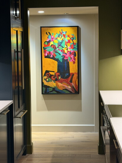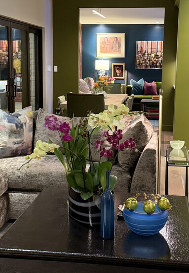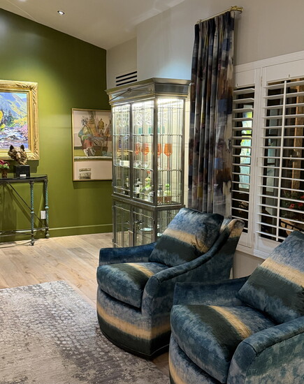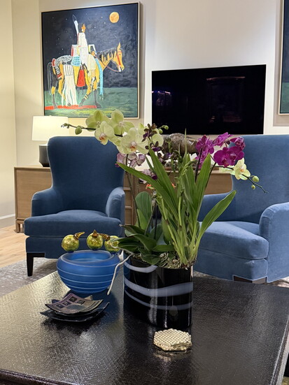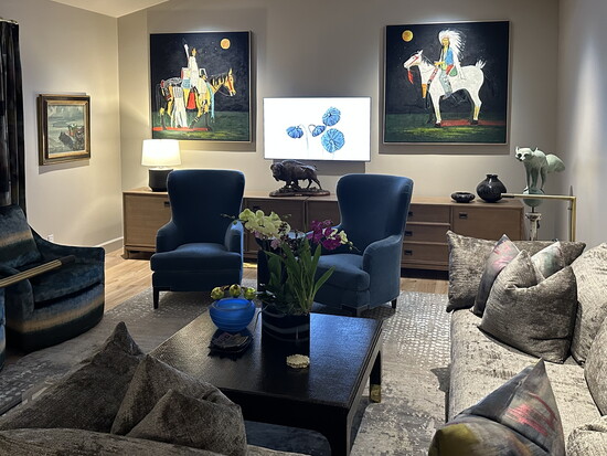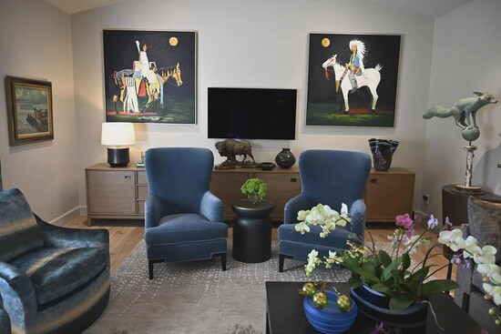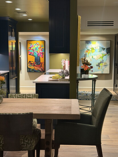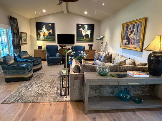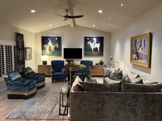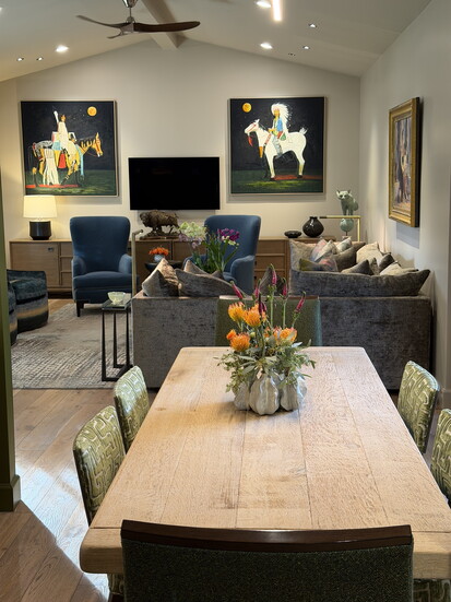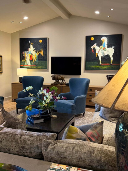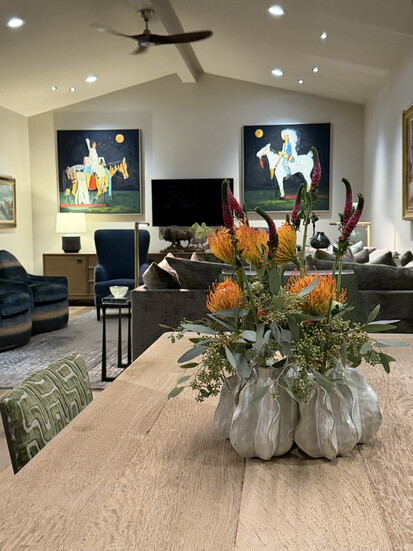 Schell spent months seeking out art—sourcing pieces from his own store, EVAN GUY, consignment shops in Scottsdale, the Richeys’ own collection, a private art estate sale, and even a few finds from a vacation to Cabo. He knew art would be central to transforming this home into a richly layered, art-driven retreat for the Richeys.