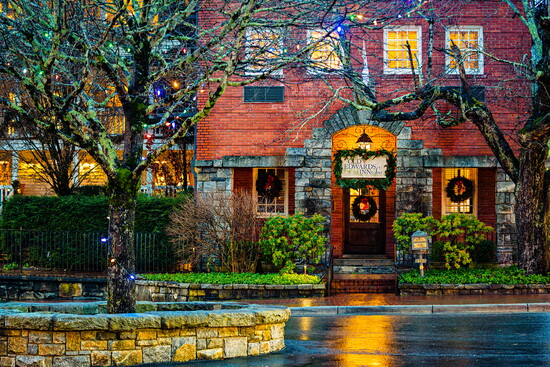 The Old Edwards Inn and Spa, hidden in the heart of Highlands, North Carolina, is a holiday destination where sugar plum dreams come to life and forever memories are longing to be made. Twinkling lights drape over stone cottages, lush garlands adorn balconies scenting the crisp Highlands air, and fires crackle in every hearth. It is as if the hush of falling snow embraces the property in the quiet, snow globe magic of the festive season. No detail is overlooked as the splendor of the holidays glow with an unmatched sense of peace and wonderment, lovingly wrapped in comfort and joy.