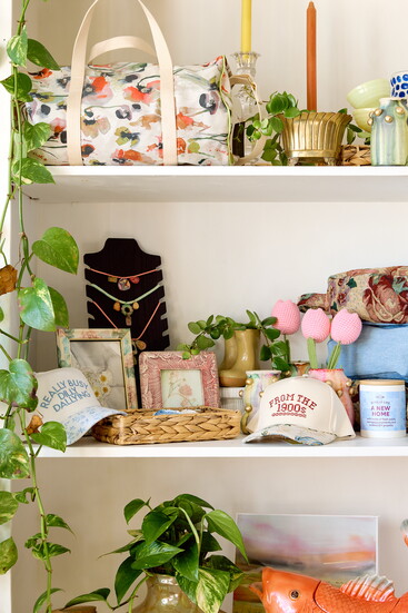 For Winkler, sustainability is practical and personal. She notes the high environmental costs of modern fashion as a reason to use vintage and repurposed materials. At the same time, the shop embraces beauty and discovery. Candles and plants fill repurposed containers, and every corner offers a small surprise. “I want people to have a treasure hunt experience when they come in,” she says.