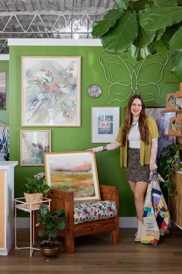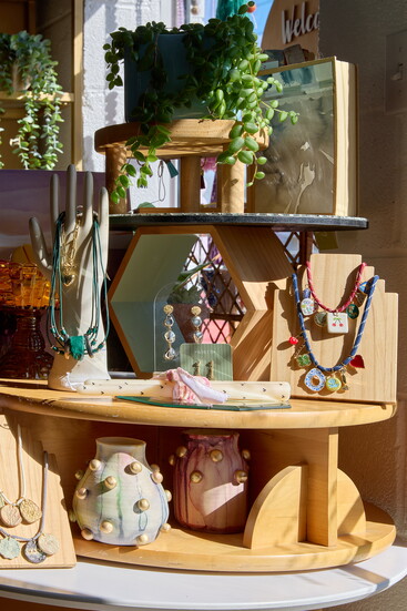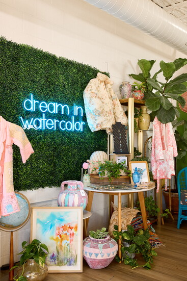 That collaborative mindset shaped her store. Inside Whitney Winkler Art, original pieces share space with handcrafted work by mostly local and regional artisans, many of them women. Jewelry, pottery, textiles, embroidery and vintage home goods fill the shop. Each is carefully selected not only for beauty, but for the human story behind it. “I value craftsmanship and people being paid fairly for their work,” Winkler explains. “I buy all of their work outright rather than doing consignment. I believe in their work, and I want them to feel valued at every step.”