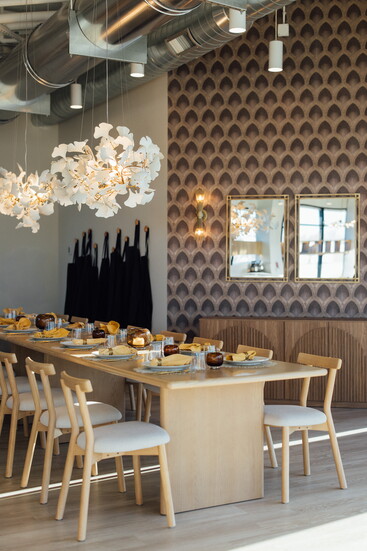 The Denver space mirrors Boulder’s signature chef’s counter layout, intentionally designed to feel welcoming rather than instructional. “I chose the chef’s counter because a lot of cooking schools use individual butcher block stations,” Easton says. “That didn’t fit the vibe I wanted.” Instead, Food Lab emphasizes collaboration. “We’re working together, not isolated.” After cooking, guests gather at a communal table. “It feels more like a dinner party than a class, which is exactly what we want.”