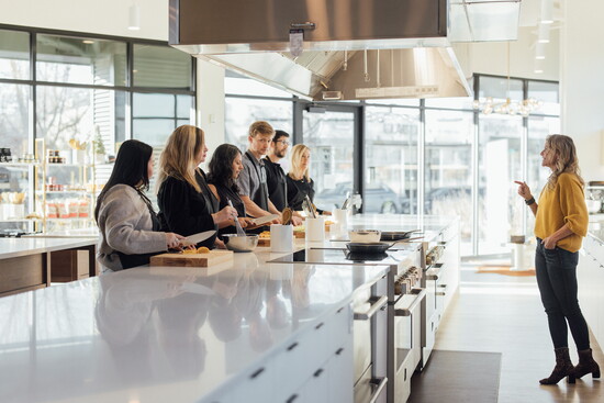 The idea for Food Lab grew organically from Easton’s earlier career as a personal chef. “When I was a personal chef, part of what I did was cook for dinner parties,” she says. “No matter what the house looked like or how it was set up, everyone always ended up in the kitchen—asking questions, watching, learning.” She noticed something universal unfolding around the stove. “I started thinking this could be something. It brings people together—people who don’t know each other and people who do…so it became this central place where people can connect, learn to cook, and eat together.”