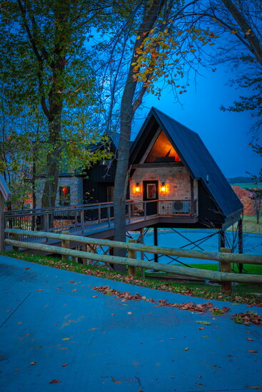 Its sister resort, Paradise Lake, is no less luxurious, but a touch more rural, located 20 minutes further down a winding backroad on a 95-acre plot with two private lakes. Featuring six A-frame style cabins in varying sizes, the private accommodations in the outskirts of historic New Philadelphia are breathtaking in every season.