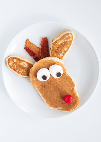 Make pancakes according to package directions, creating 6 medium oval pancakes and 12 small ovals for ears. Arrange two small pancakes atop each large one for the face. Add bacon pieces for antlers, halved marshmallows with chocolate chip centers for eyes, and a cherry for the nose. Drizzle with syrup and bask in the applause.