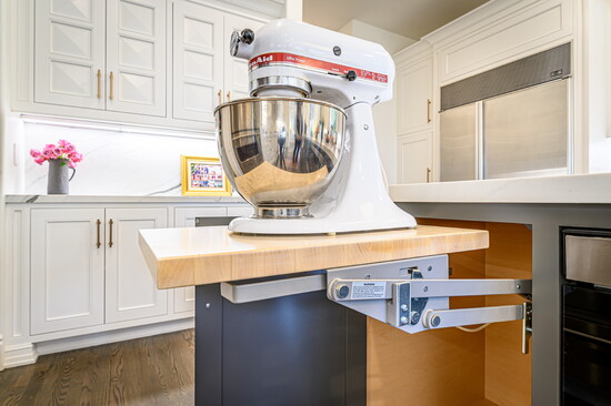 “When designing clients' cabinetry, we typically design the base cabinets and the taller pantries with pull-outs behind the doors, so that they aren't having to bend over or stoop down to try to access the lower areas, which is especially advantageous as we get older,” he says.