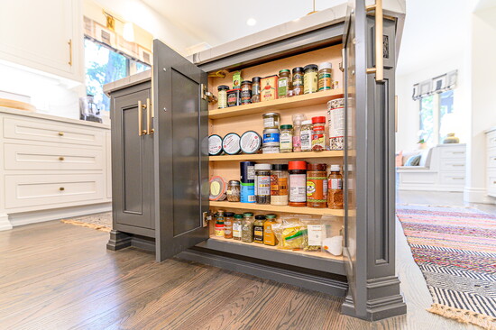 They enjoy showing clients the seemingly endless options for add-ons, making additional storage/organization a breeze in their redesigned room or space, from trash pull-outs, blind corner systems, and ½ Lazy Susans to drawer dividers, cookie tray dividers, mixer lifts, and much more.