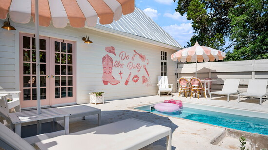 Farmhouse charm meets designer flair—with a healthy splash of pink, of course. Just minutes from Gruene, this luxury retreat offers vaulted ceilings, shiplap walls, and a heated plunge pool for peak Hill Country indulgence. It’s the perfect place for couples, small families, or anyone craving a little extra fabulousness.