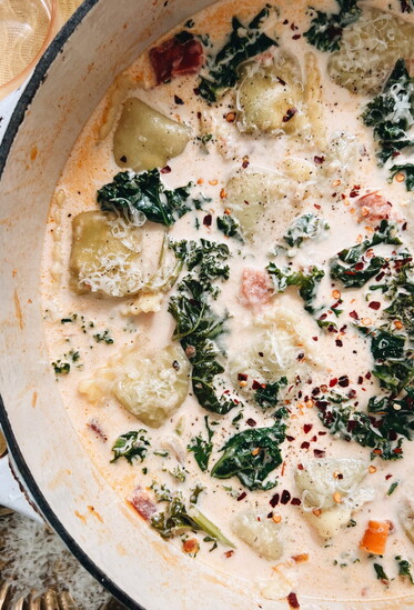 - Off the heat check for salt. Need another pinch? Do it. Add freshly grated parmesan and a pinch of crushed red pepper for a kick. Serve with crusty bread!