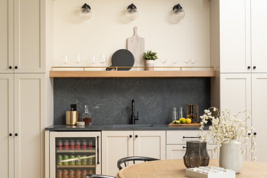 Popular appliance requests include double ovens, built-in wine coolers, and espresso stations — ideal for baking batches of cookies or enjoying a slow morning coffee with the family. Retractable doors can also be added to tuck away small appliances when they’re not in use.