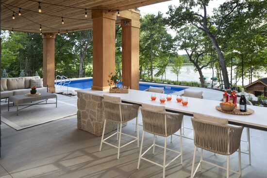 With bonfire and marshmallow-roasting season upon us, having connected kitchen and entertaining spaces makes it easy to serve warm drinks and snacks while hosting friends and family on a chilly October night.